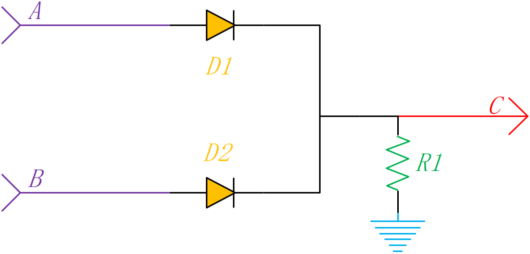 開關(guān)二極管的使用示例介紹1 基本邏輯門開關(guān)二極管可用于極低成本的解決方案中,以實現(xiàn)簡單、低速的邏輯功能。如圖5-1所示,控制信號A和B通